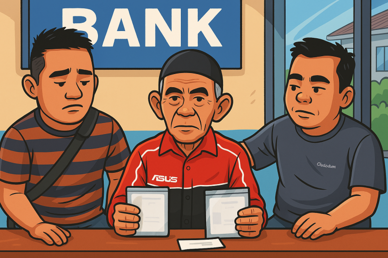 Masrup bersama keluarganya mendatangi kantor BRI pada Jumat (4/7/2025) untuk mencari kejelasan. Namun, jawaban dari pihak bank tak kunjung memuaskan, bahkan semakin memperbesar rasa kecewa.