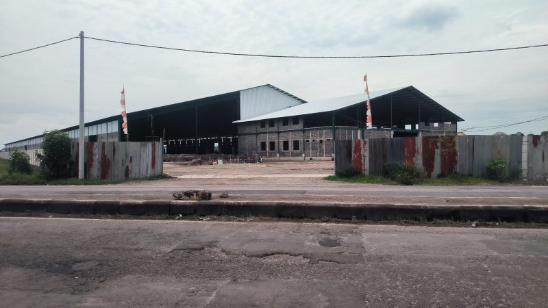 Pantauan di lokasi menunjukkan adanya sumur bor di dalam area gudang yang masih dalam tahap pembangunan itu. Sebuah pompa air juga terlihat terpasang di sudut kanan pintu masuk dan dialiri selang warna hijau menuju area proyek. Pompa tersebut, sebagian tertutup potongan seng.