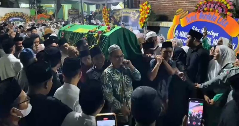 Prosesi pelepasan berlangsung haru di halaman Masjid Ponpes Mamba’ul Ma’arif, Denanyar. Dengan iringan doa, ribuan santri dan keluarga, para aktivis, terus mengumandangkan kalimat tauhid.